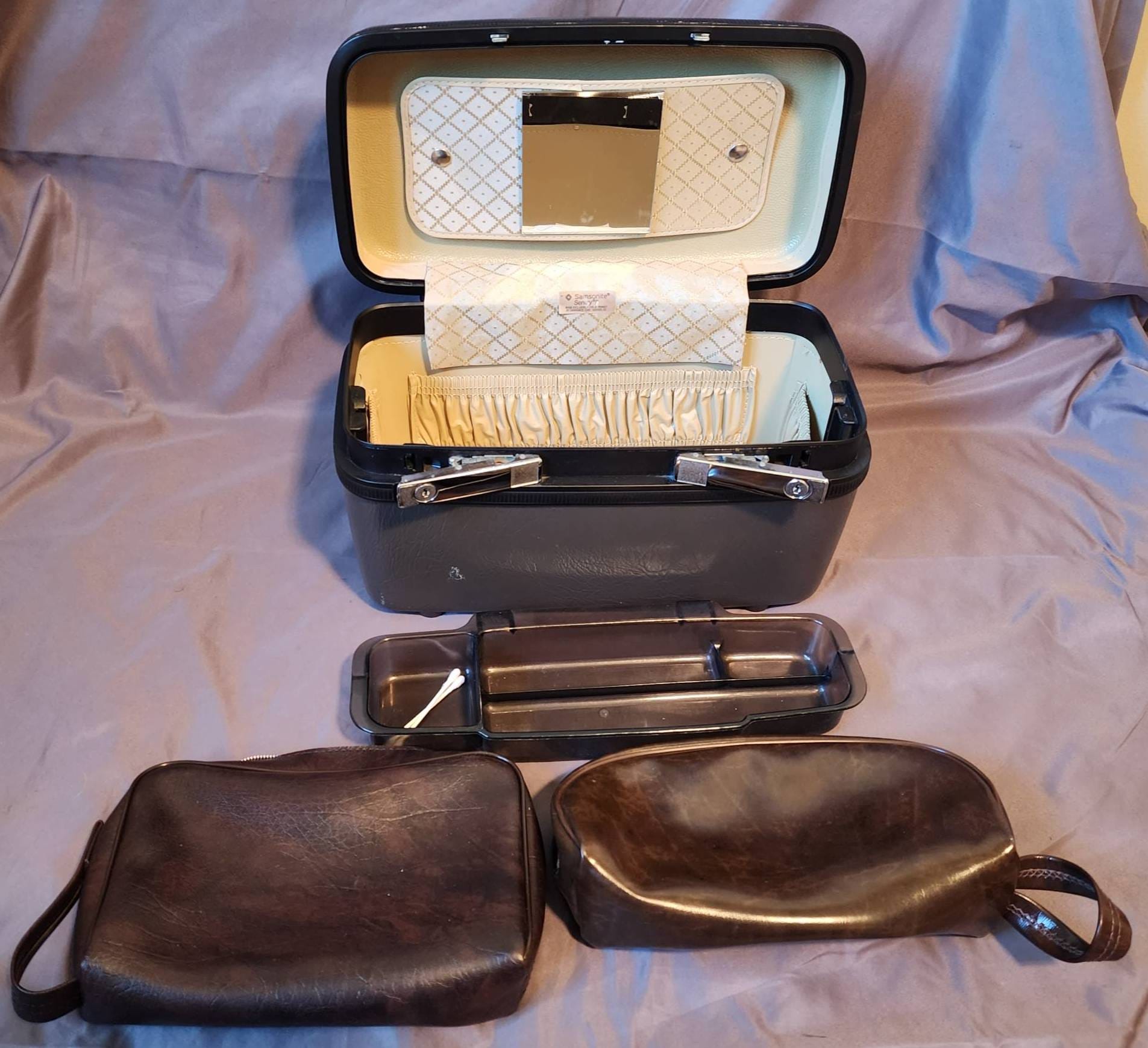 500 Gray Plastic Travel Case with Mirror and Accessories 9?H x 15?W x 8?D