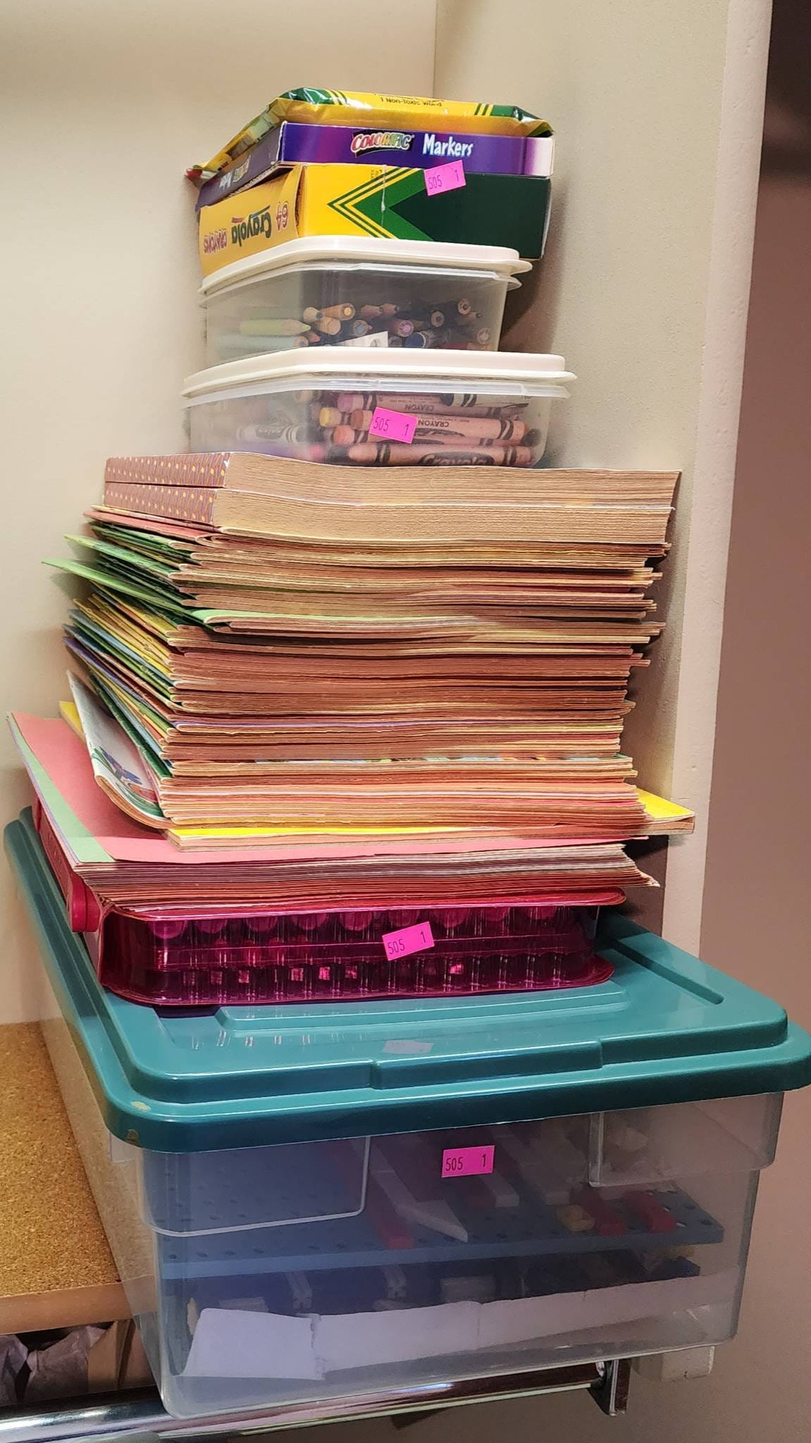 505 Set of Art Supplies, Coloring Books and Tupperware Snapics Transportation Set