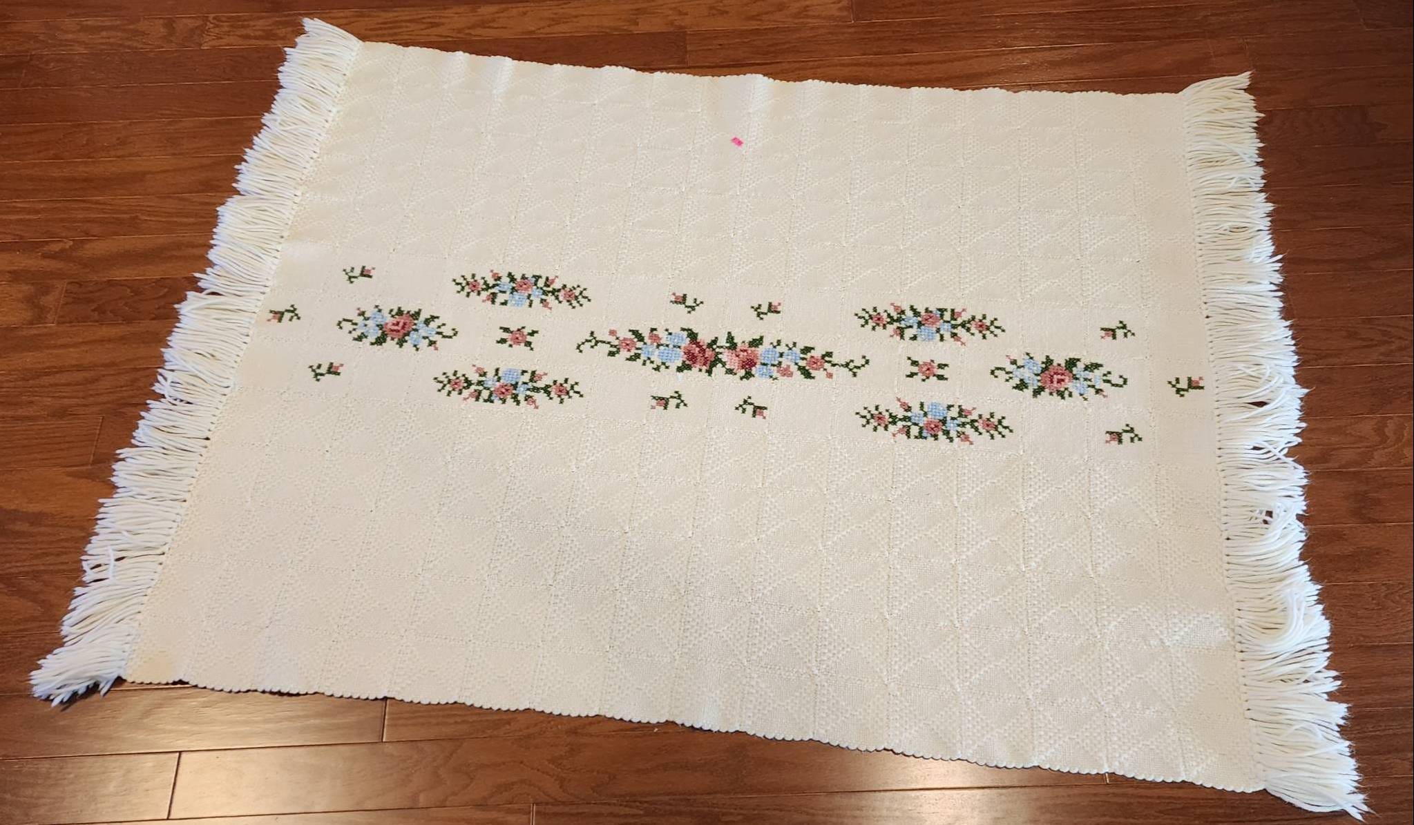 506 Handwoven Fringe Rug with Floral Embroidery 41? x 59?