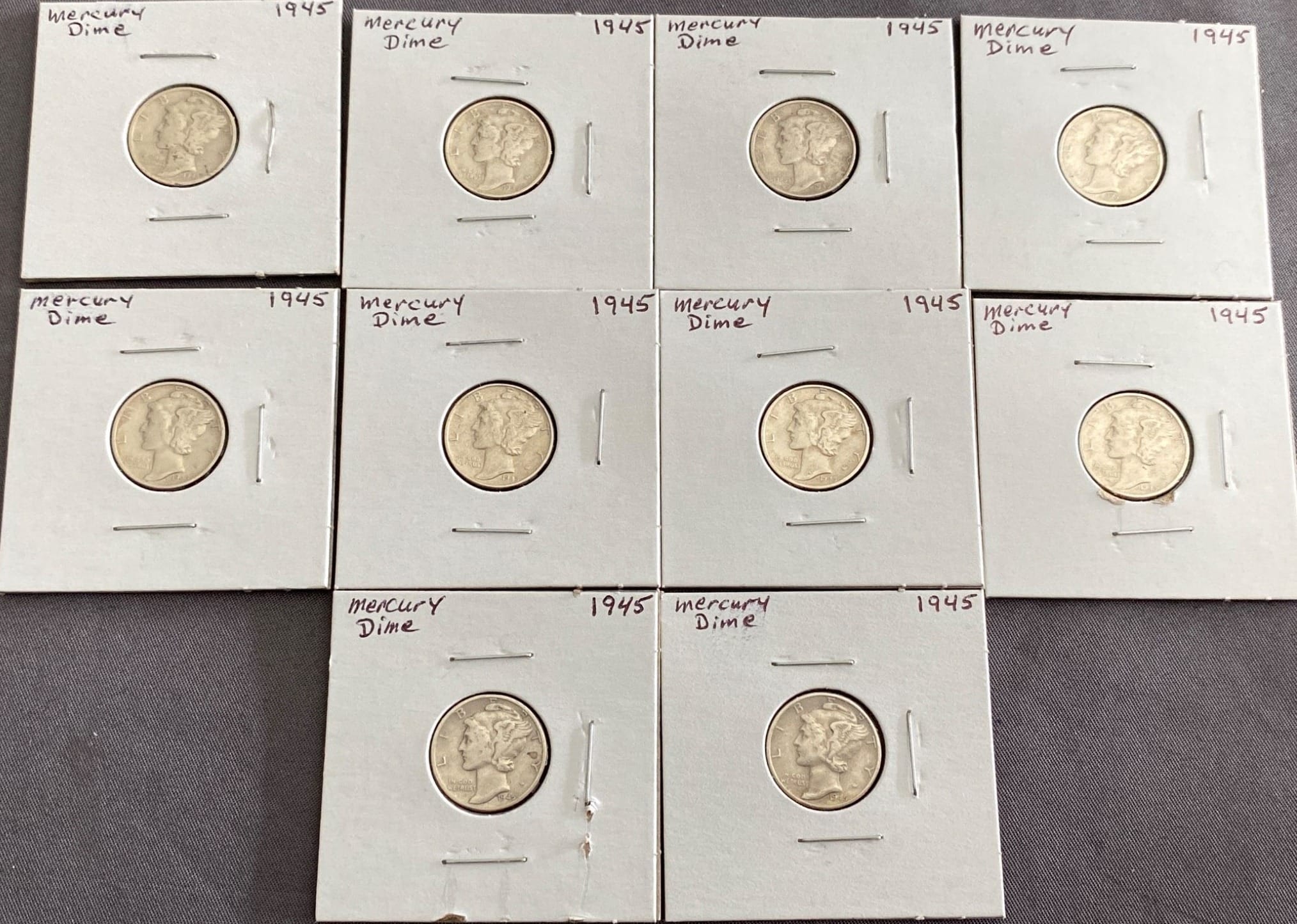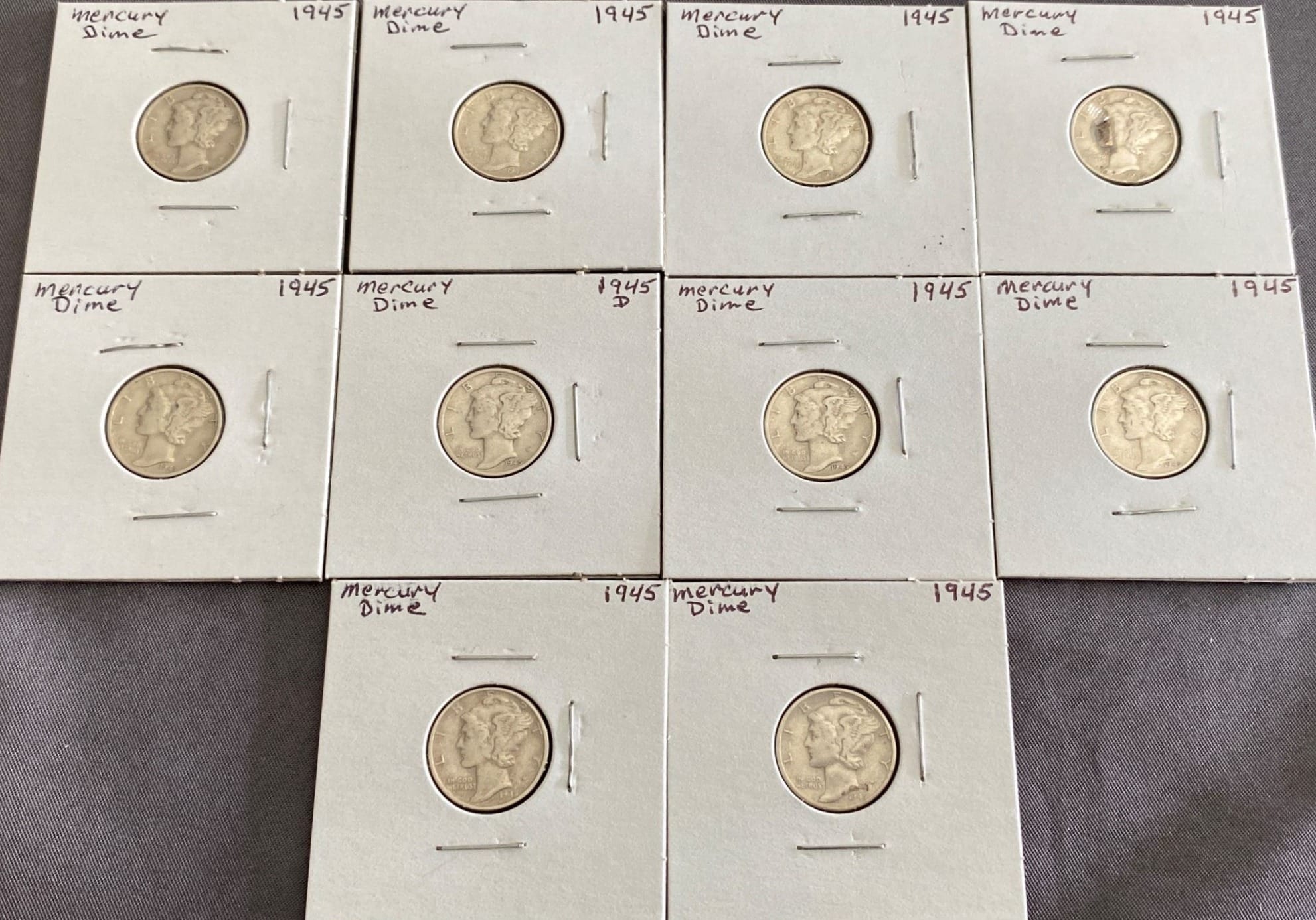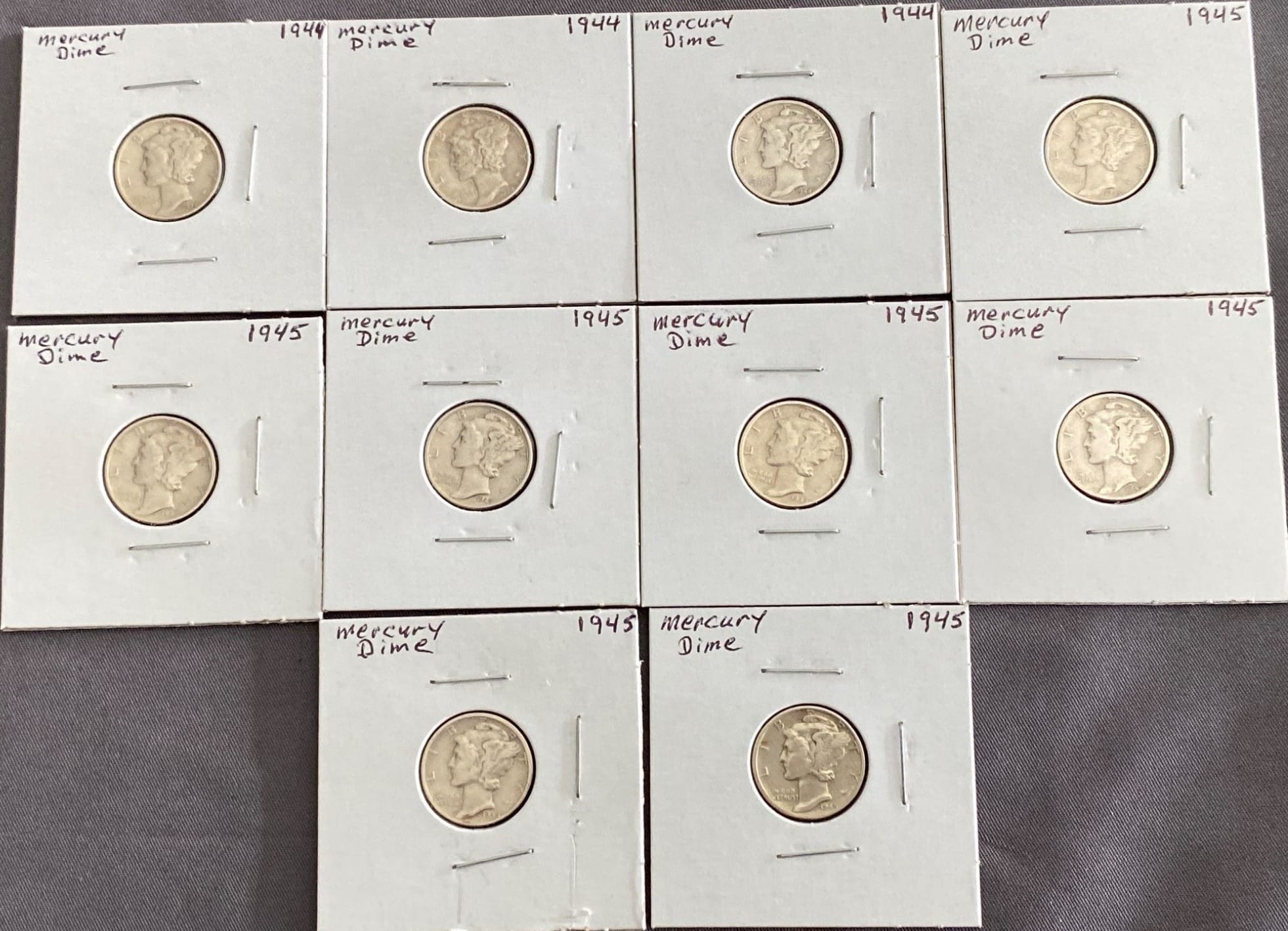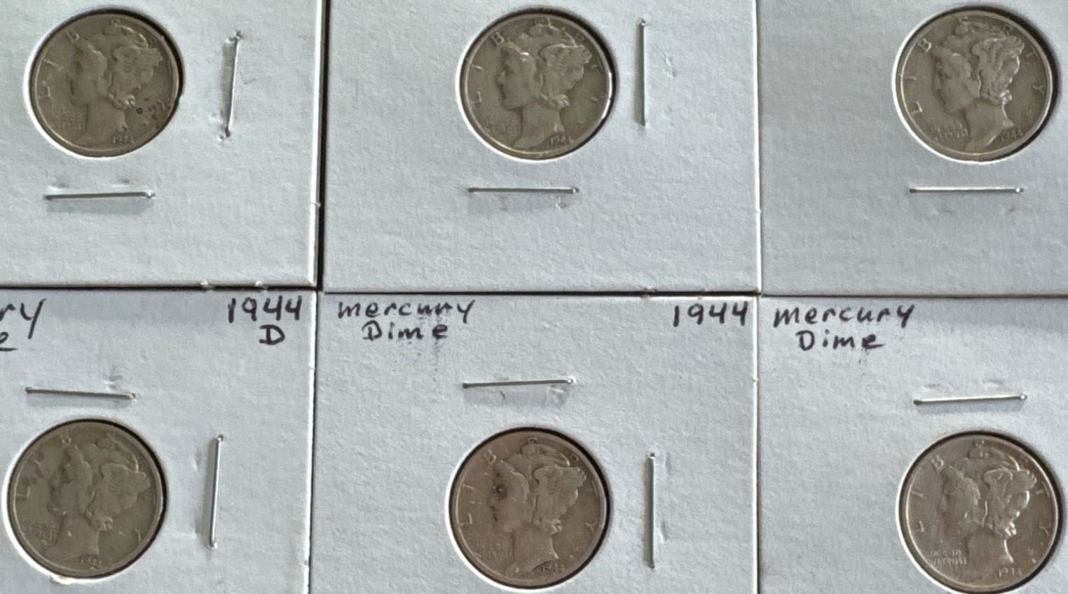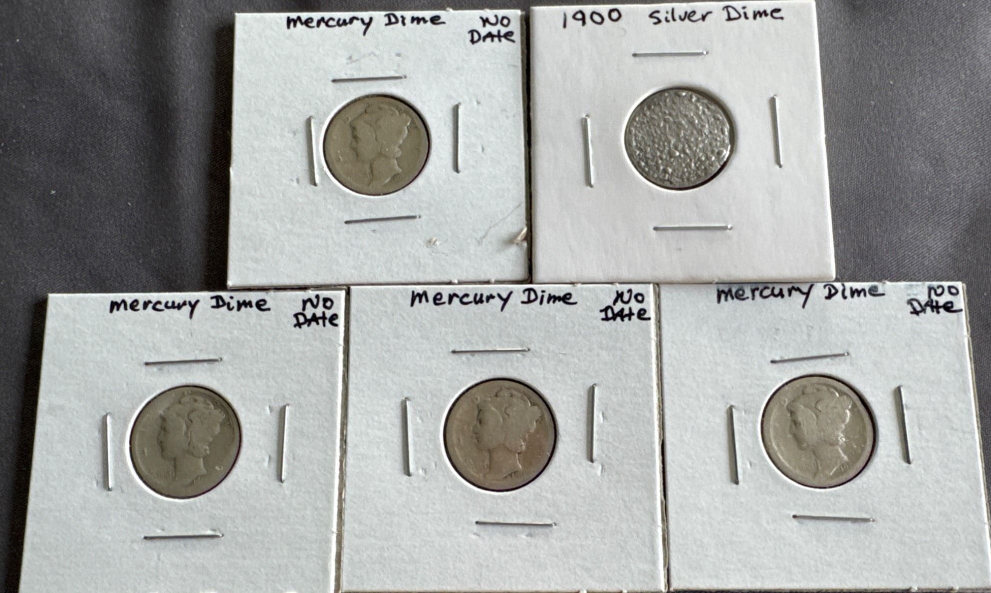 3388 5 Mercury Dimes - No Dates, One 1900 Dime