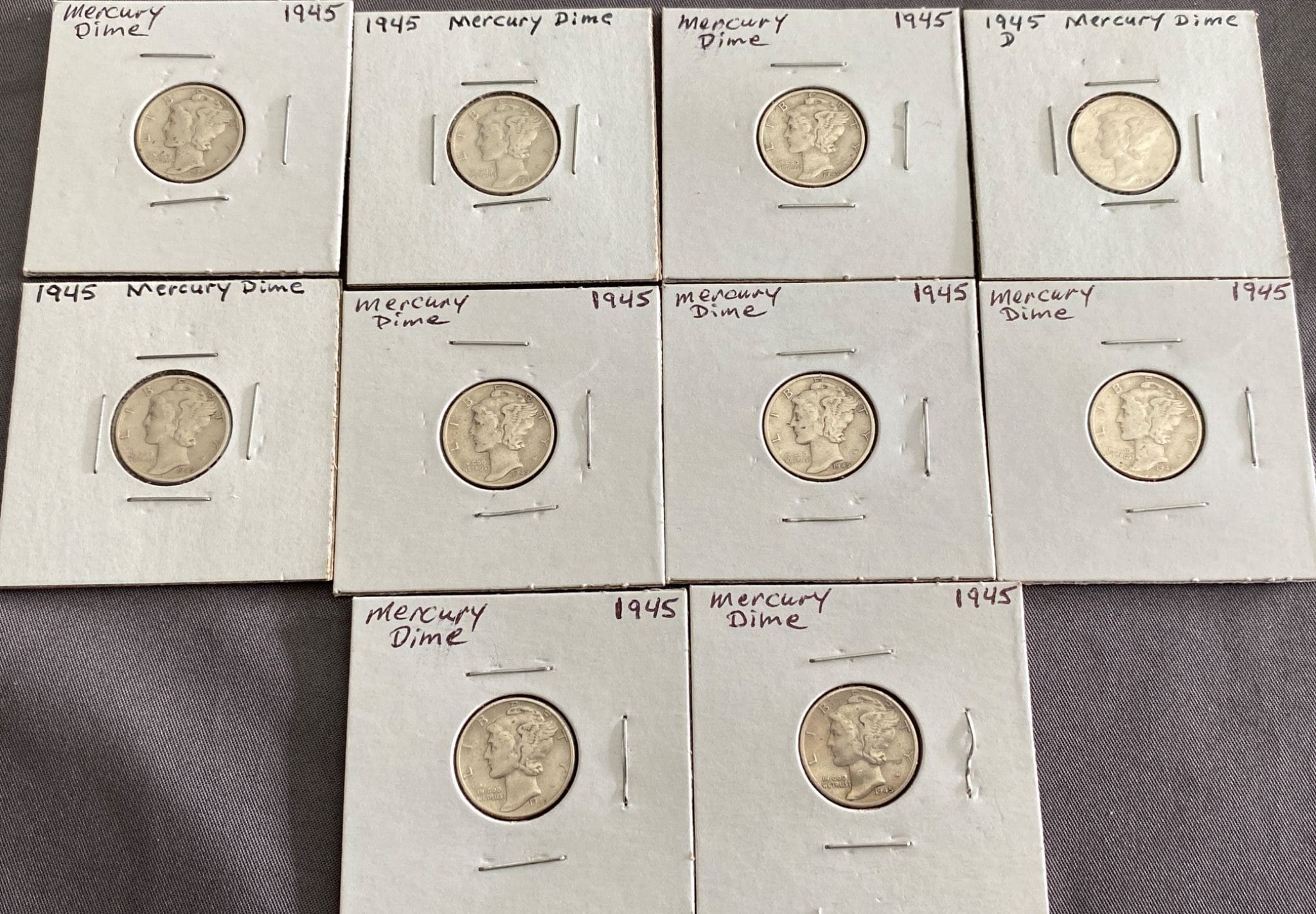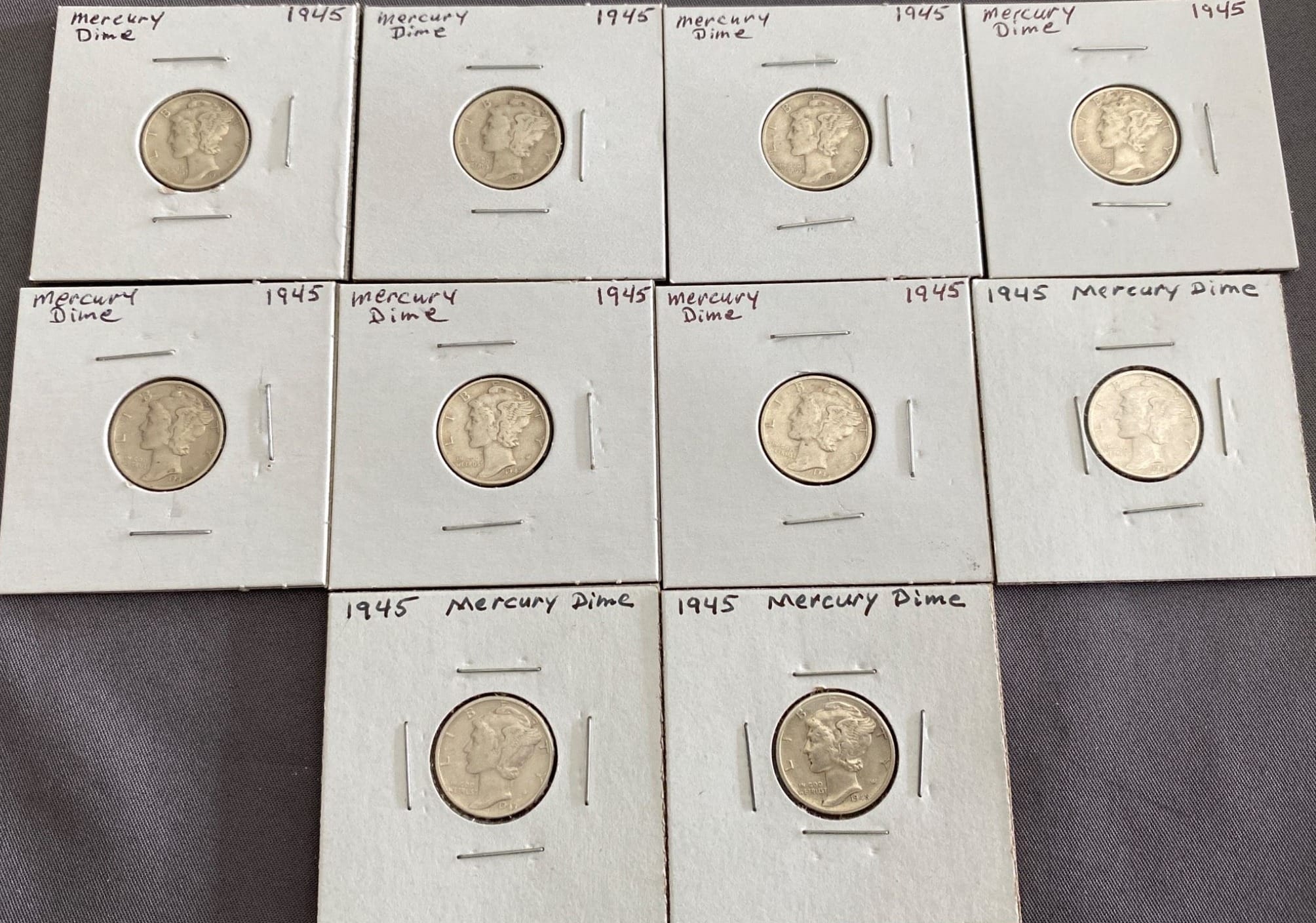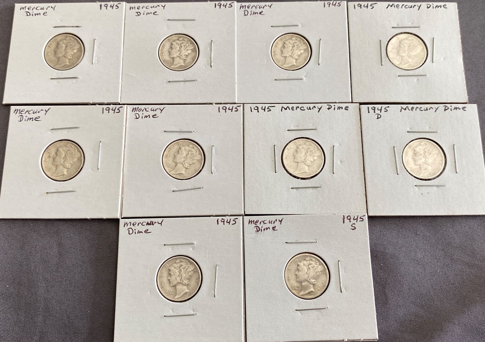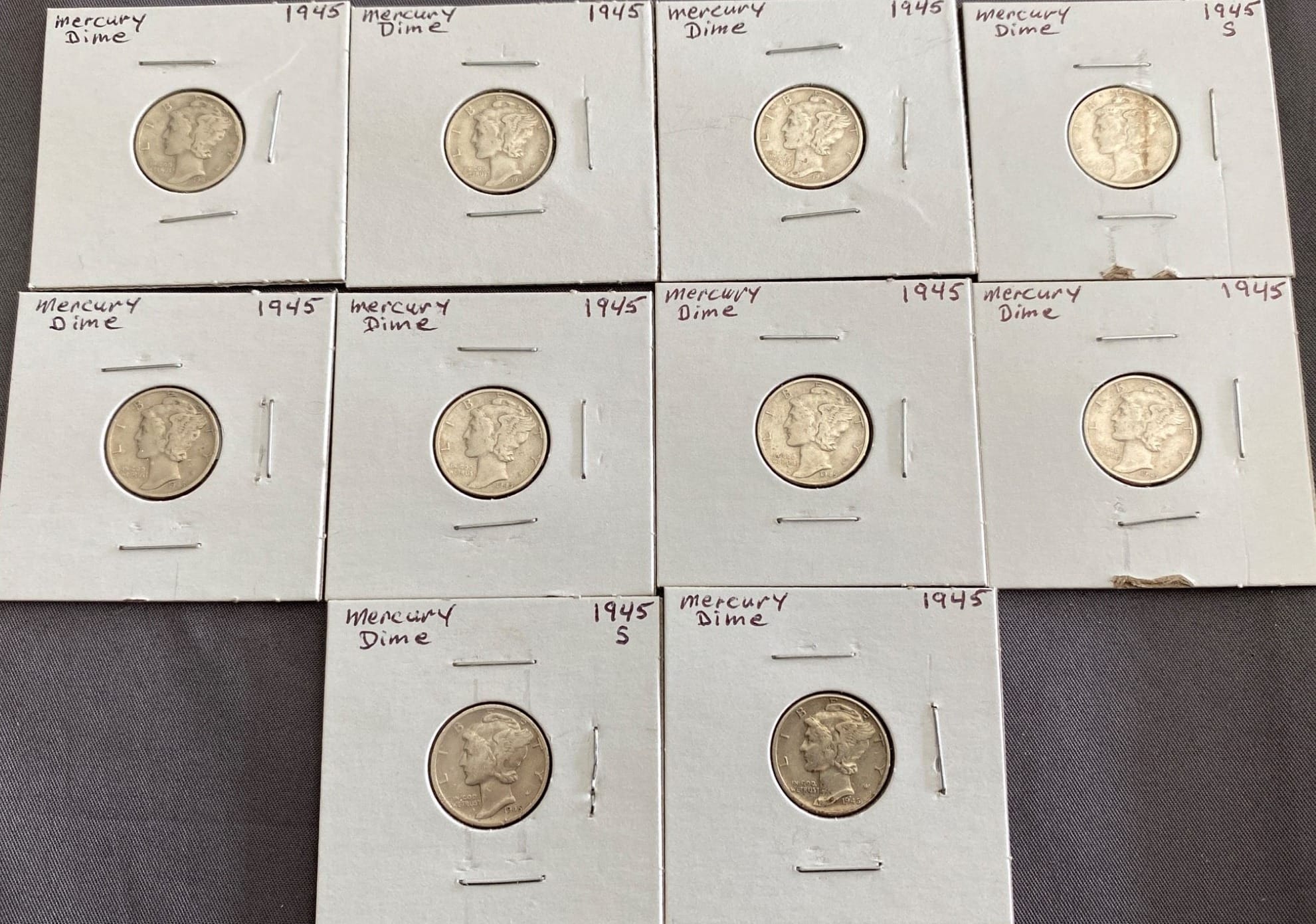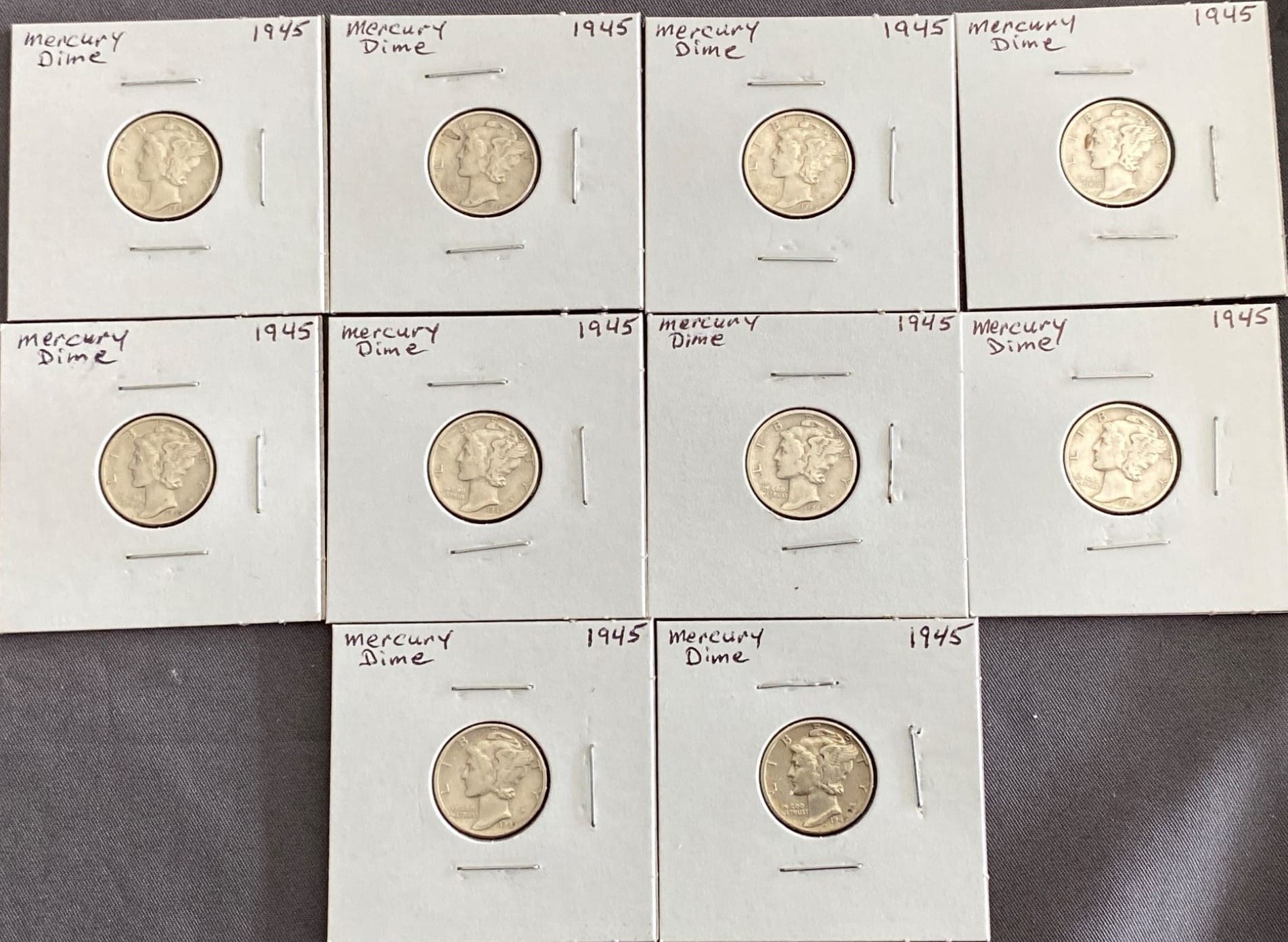 3388 5 Mercury Dimes - No Dates, One 1900 Dime