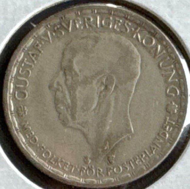 3366 1947 Sweden 1 Krona Coin with Gustaf V Portrait