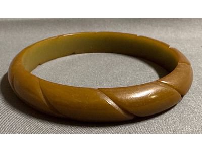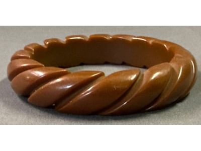 1 Carved Bakelite Bangle Bracelet in Brown Tone