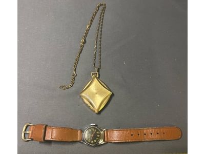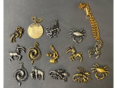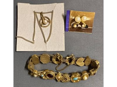 16 Gold-Tone Jewelry Set with Necklace, Money Clip, Bracelet, and Ring – Missing some stones