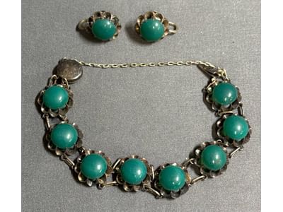 657 Mexico Sterling Arnada Silver Charm Bracelet, Made in Siam Sterling Bracelet & and Green Stone Link Bracelet