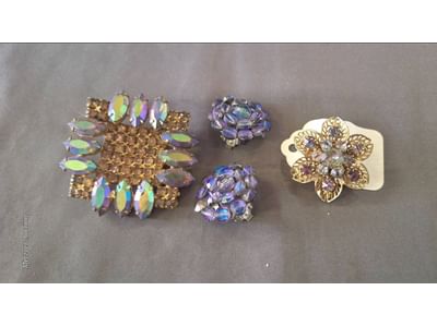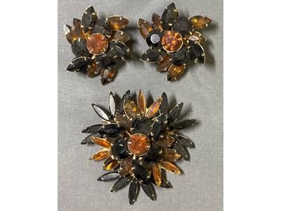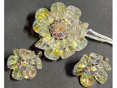 24 Crystal Bead Clip-On Earrings and Matching Brooch Set