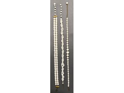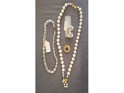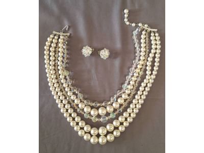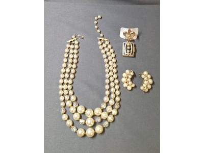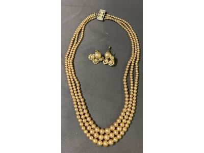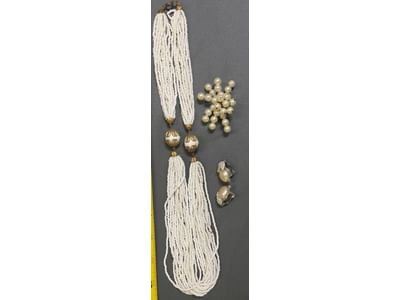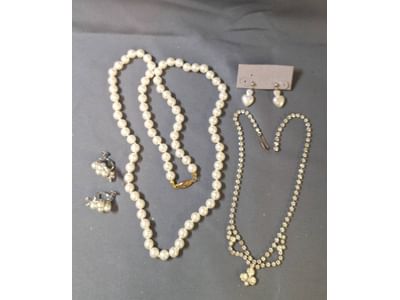 31 Faux Pearl Necklace and Three Pairs of Clip-On Earrings