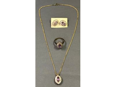 658 Charm Bracelet, Gold-Tone Pendant Necklace, and Purple Gemstone Ring