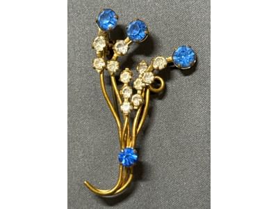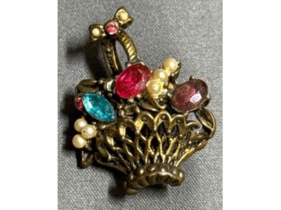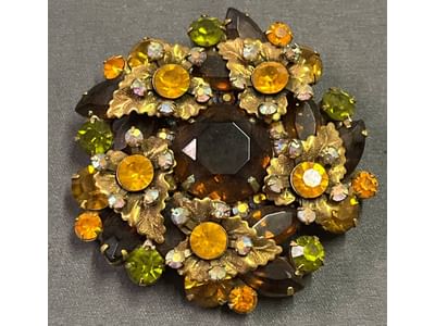 25 Gold-Tone Brooch with Colored Rhinestones and Floral Motif