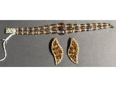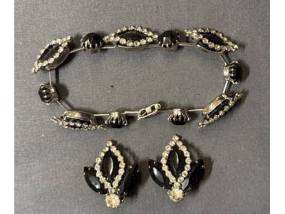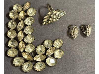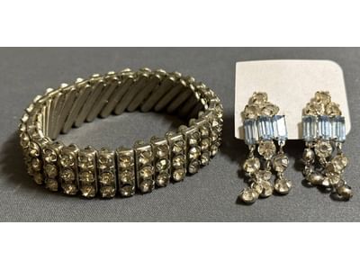 68 Rhinestone Link Bracelet and Two Pairs of Clip-On Earrings
