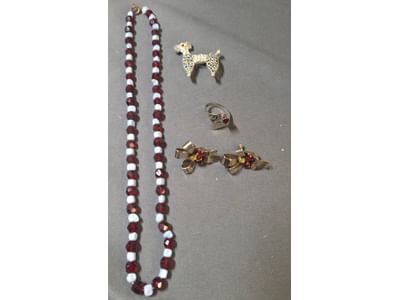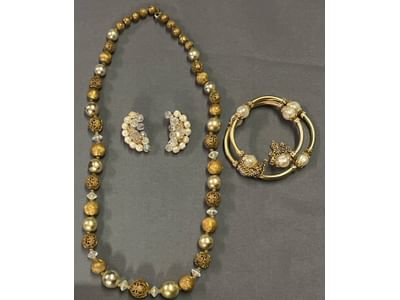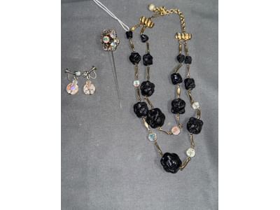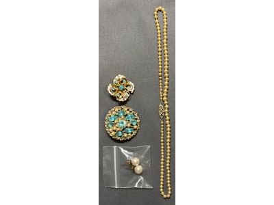 690 Earrings, Brooch, and Beaded Necklace Jewelry Set