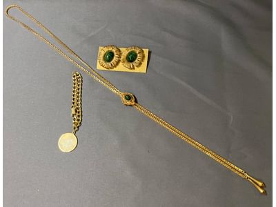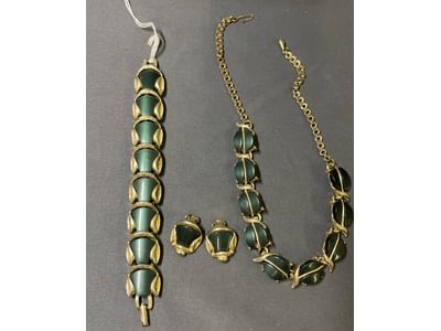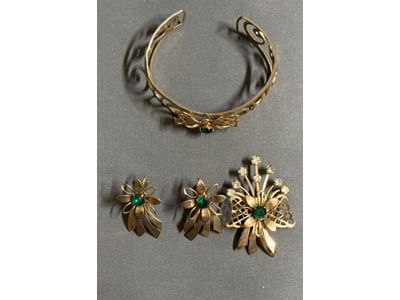 88 Gold-Tone Jewelry Set with Green Stone Accents