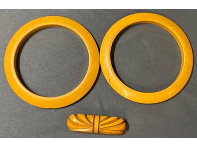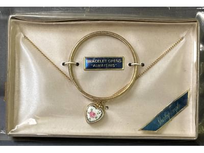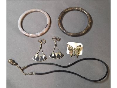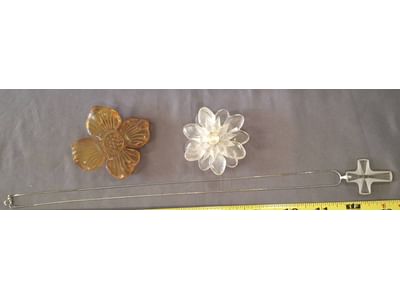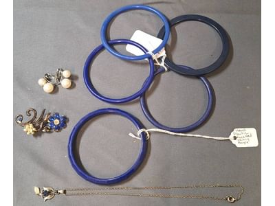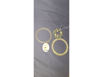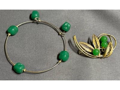 695 Jewelry Set with Floral Brooch, Enamel Pin, and Two Bangles