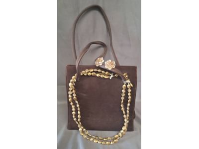 48 Wicker Handbag with Liner and Woven Straw Hat with Brown Accents