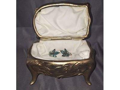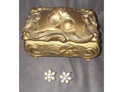 678 Gold-Tone Floral Brooch with Rhinestones and Embroidered Fabric Box