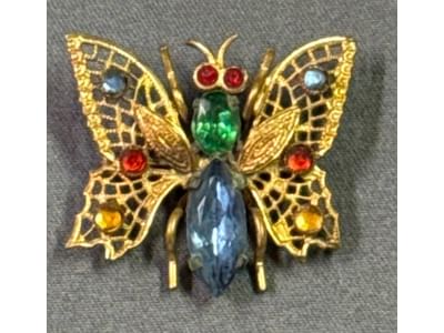 17 Gold-Tone Butterfly Brooch with Multicolored Rhinestones