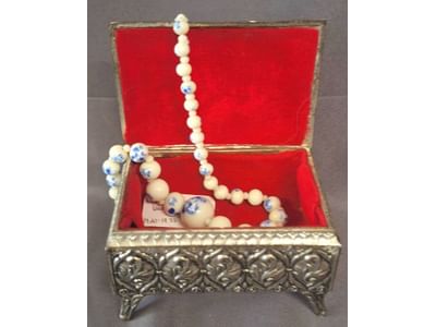 740 Porcelain Box Marked ‘France,’ Rhinestone Brooch, and Pendant Necklace