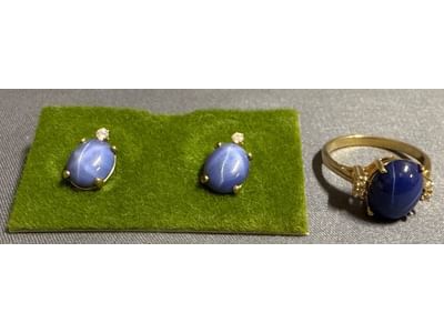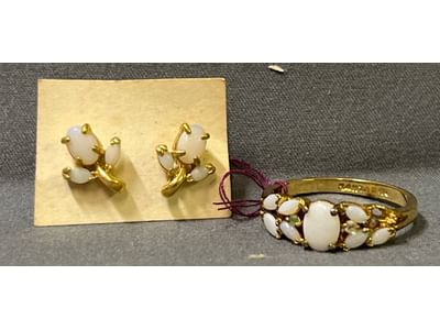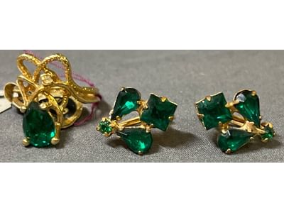 38 Ring and Screw-Back Earrings with Green Gemstones – both marked 18K HGE