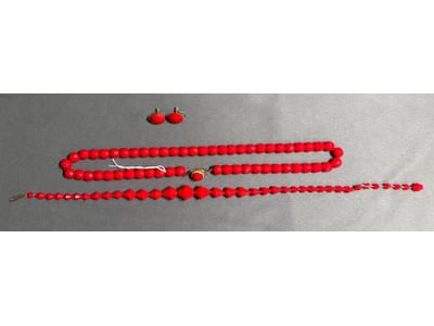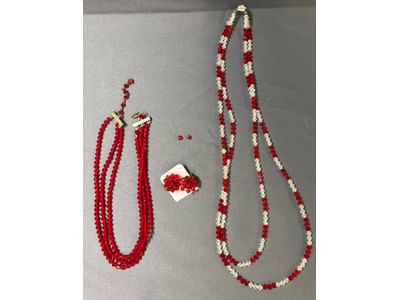 719 Red Beaded Jewelry Set with Clip-On Earrings and Necklaces
