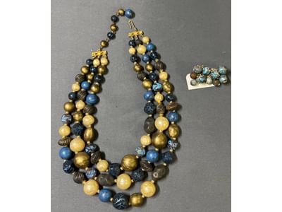3 Beaded Necklace with Matching Clip-On Earrings in Yellow and Clear Tones