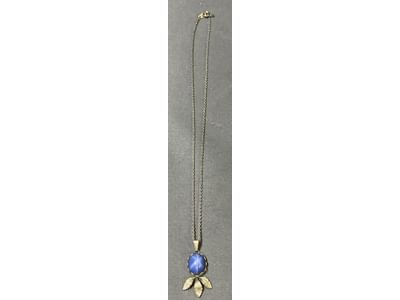 730 Silver-Tone and Blue Rhinestone Brooch with Matching Beaded Necklace