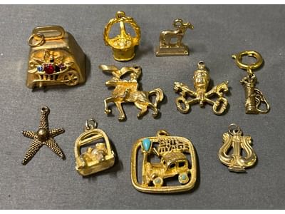 26 Gold-Tone Key Brooch with Multi-Charms and Colored Accents
