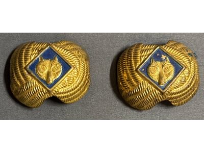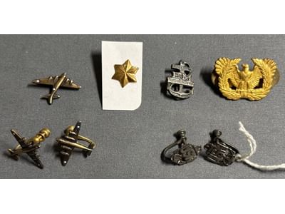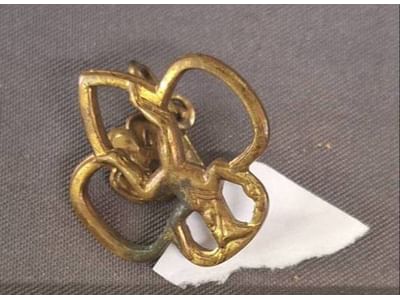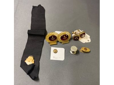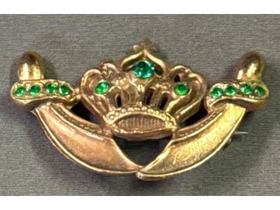 21 Gold-Tone Pin with Crown and Sword Motif Featuring Green Accents