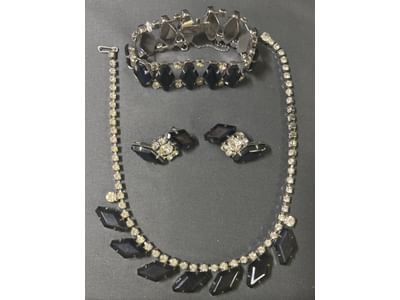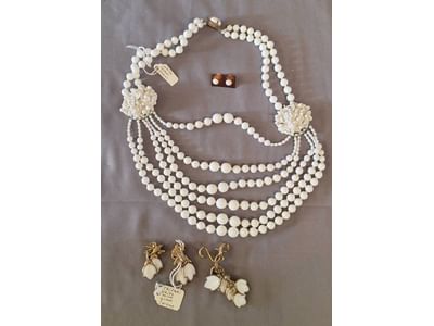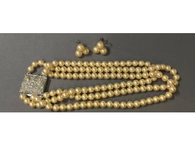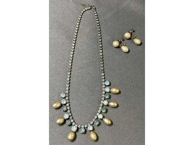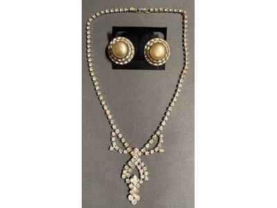 40 Necklace and Earrings Set with Rhinestones in Box Marked ‘Garland’