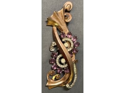 14 1-20 12K Gold Filled Brooch with Amethyst and Floral Design