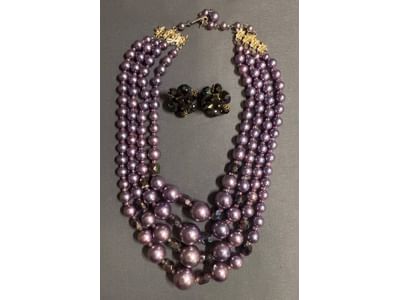 80 Four-Strand Graduated Bead Necklace and Clip-On Earrings with Gold-Tone Accents