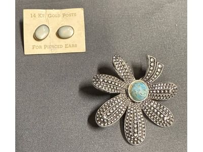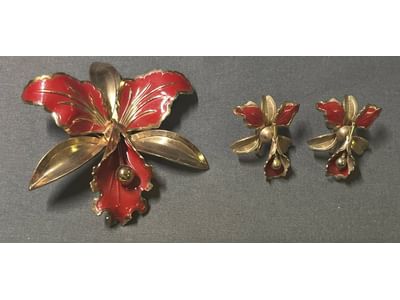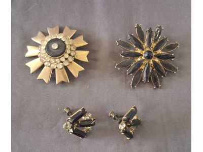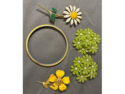 62 Floral-Themed Brooches and Clip-On Earrings with Yellow Enamel Bangle