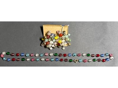 74 Jewelry Set with Beaded Necklaces, Clip-On Earrings, and Rhinestone Bracelet