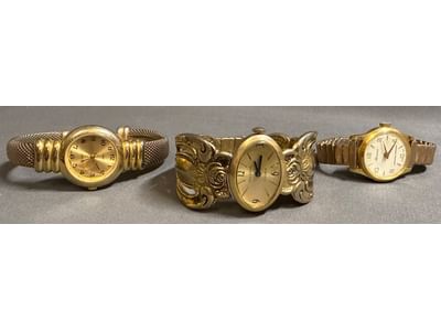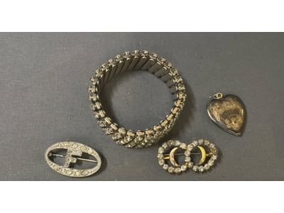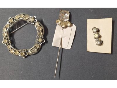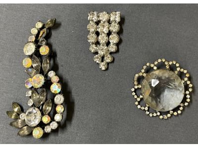 660 Gold-Tone Hinged Bracelet and Two Rhinestone Brooches