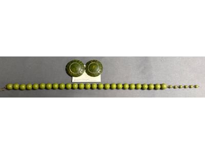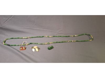 724 Plastic Jade-like Necklace with Earrings and Metal Brooch