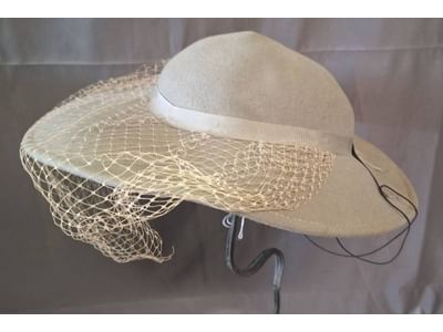 58 Modern Miss White Woven Hat with Beaded Embellishment and Stand, 18 Inches