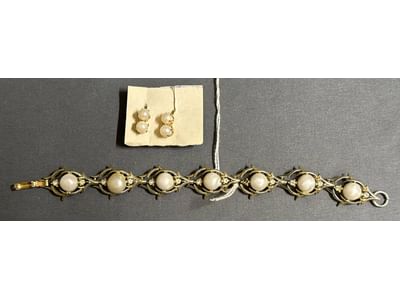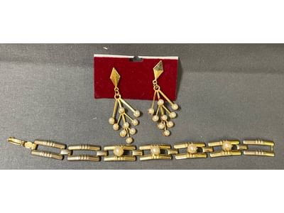 699 Gold-Tone and Faux Pearl Jewelry Set with Bracelet, Earrings, and Clips