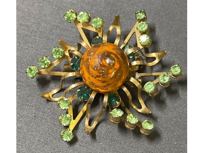 82 Castlecliff Starburst Brooch with Amber and Citrine Glass Stones
