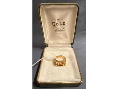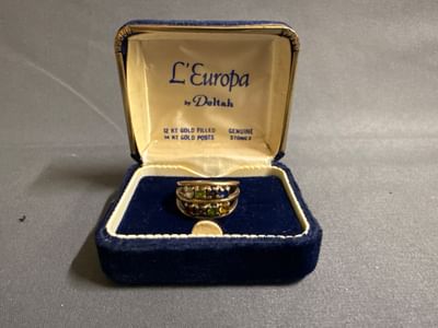 715 Gold-Tone Ring with Multi-Colored Stones in Case Labeled L’Europa by Deltah 12 KT Gold Filled