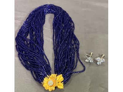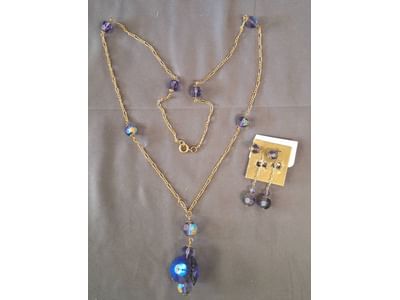 718 Beaded Necklaces and Earrings in Purple, Blu, and Metallic Tones