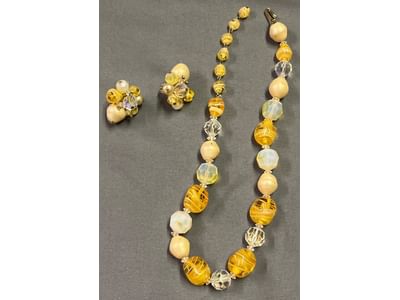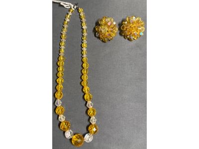 83 Yellow Beaded Necklace and Clip-On Earrings Set