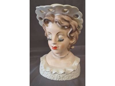 49 Glass Mannequin Head with Lane Bryant Dark Blue Braided Hat