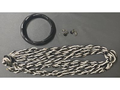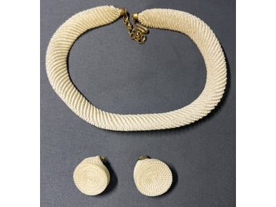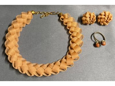 78 Braided Fabric Necklace, Fabric Clip-On Earrings, and Adjustable Two-Stone Ring