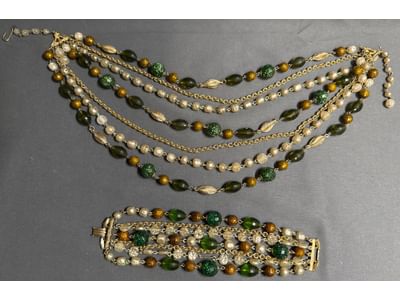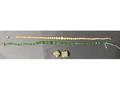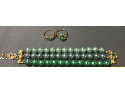 39 Gold-Tone Jewelry Set with Green Stone and Pearl Accents
