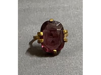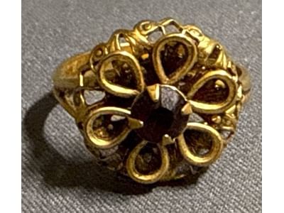 693 Gold-Tone Ring with Red Gemstone in Hexagonal Red Presentation Box