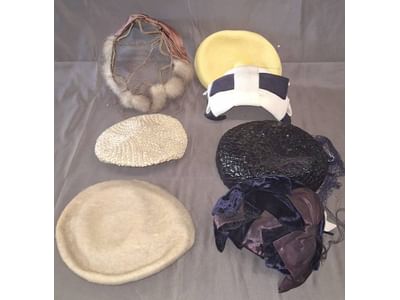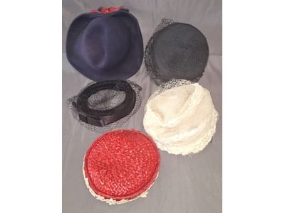 57 Child’s and Ladies’ Straw and Fabric Hats with Feather and Ribbon Accents, RH Macy co.