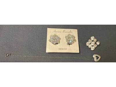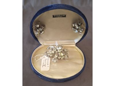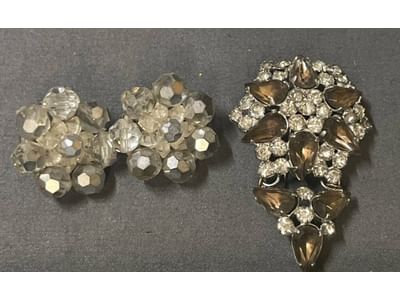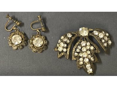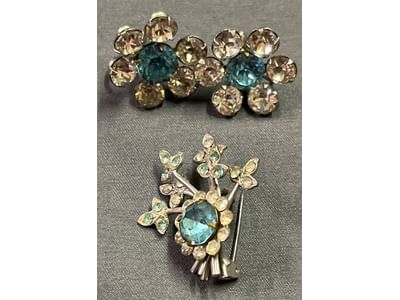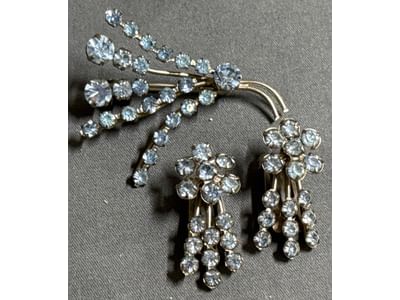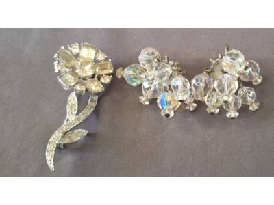 682 Silver-Tone Rhinestone Clip-On Earrings and Brooch Set