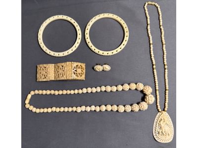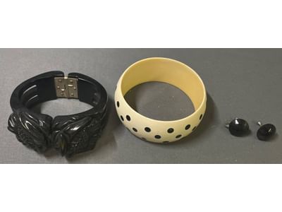 18 Carved Plastic Bracelet and Pin with Leaf Motif