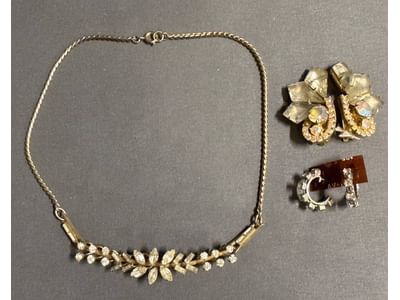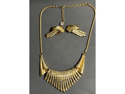 70 Corocraft Gold-Tone Necklace and Matching Clip-On Earrings with Clear Rhinestones by Trifari