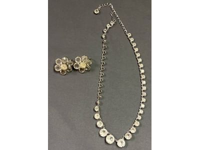 28 Rhinestone Necklace and Clip-On Earrings Set