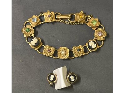 698 Gold-Tone Bracelet and Brooch with Oval Cameo Designs